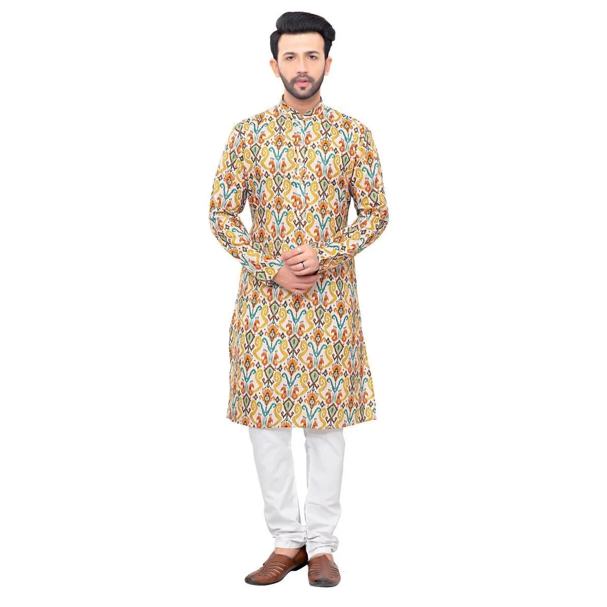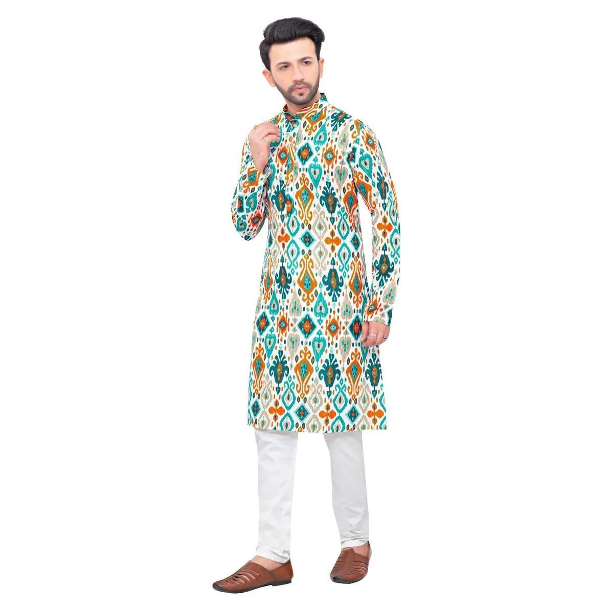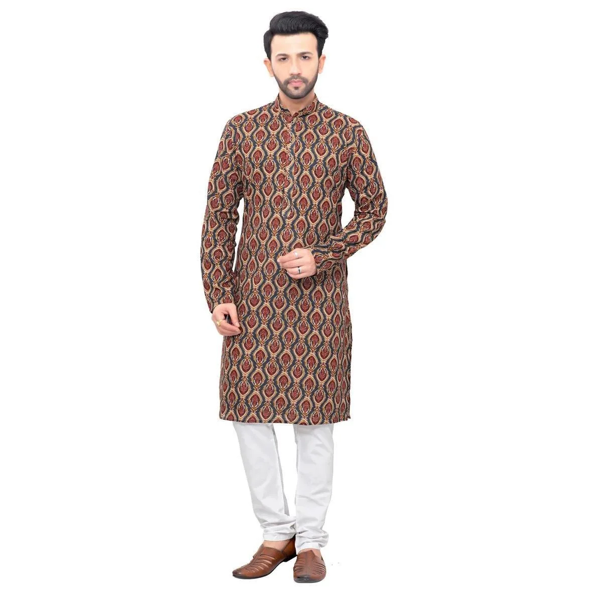 ชุดคุर्ตาแบบดั้งเดิมของผู้ชาย ลายพิมพ์ดิจิทัล สไตล์จีน แขนยาว ทรงปกติ เหมาะสำหรับทุกโอกาส เช่น งานวันเกิด สไตล์ตะวันออกกลาง - TopDealBox