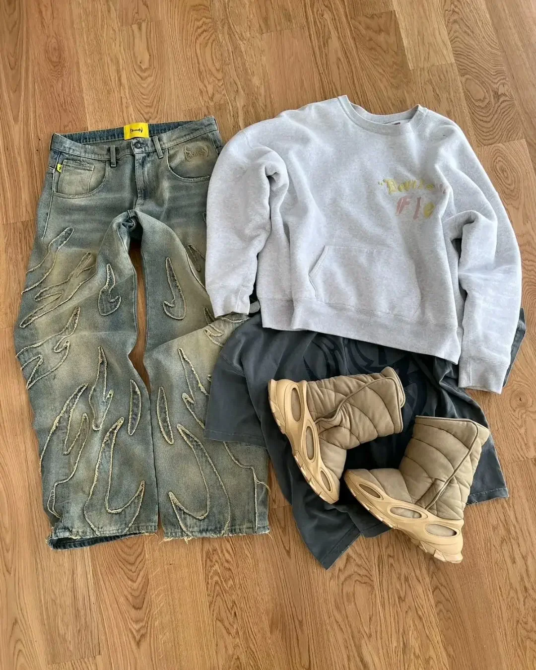 ♡ดูแบบย่อกางเกงยีนส์ขาใหญ่ทรงแบ็กกี้สไตล์ฮาราจูกุกางเกงยีนส์เอวสูงปักลายกราฟิกแนวกอธิคสีน้ำตาล Y2K กางเกงขากว้างสำหรับผู้ชาย734.29 THBมาแรง★★★★★★4.5
