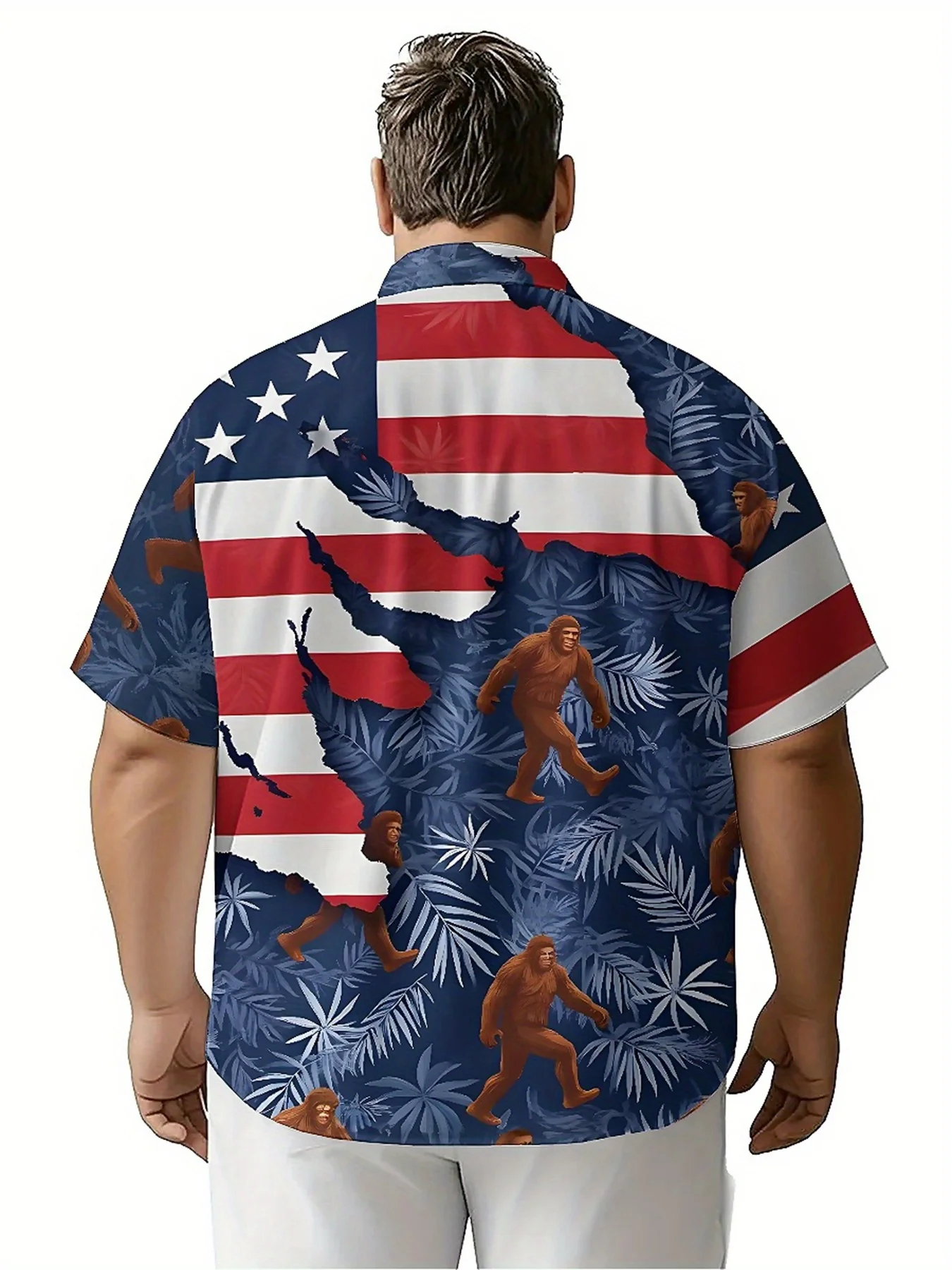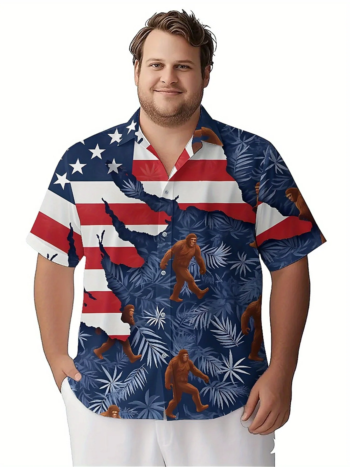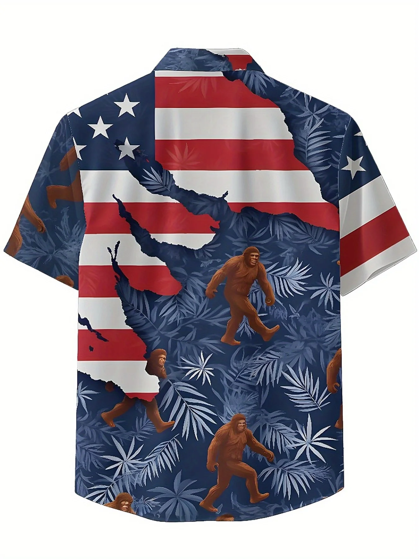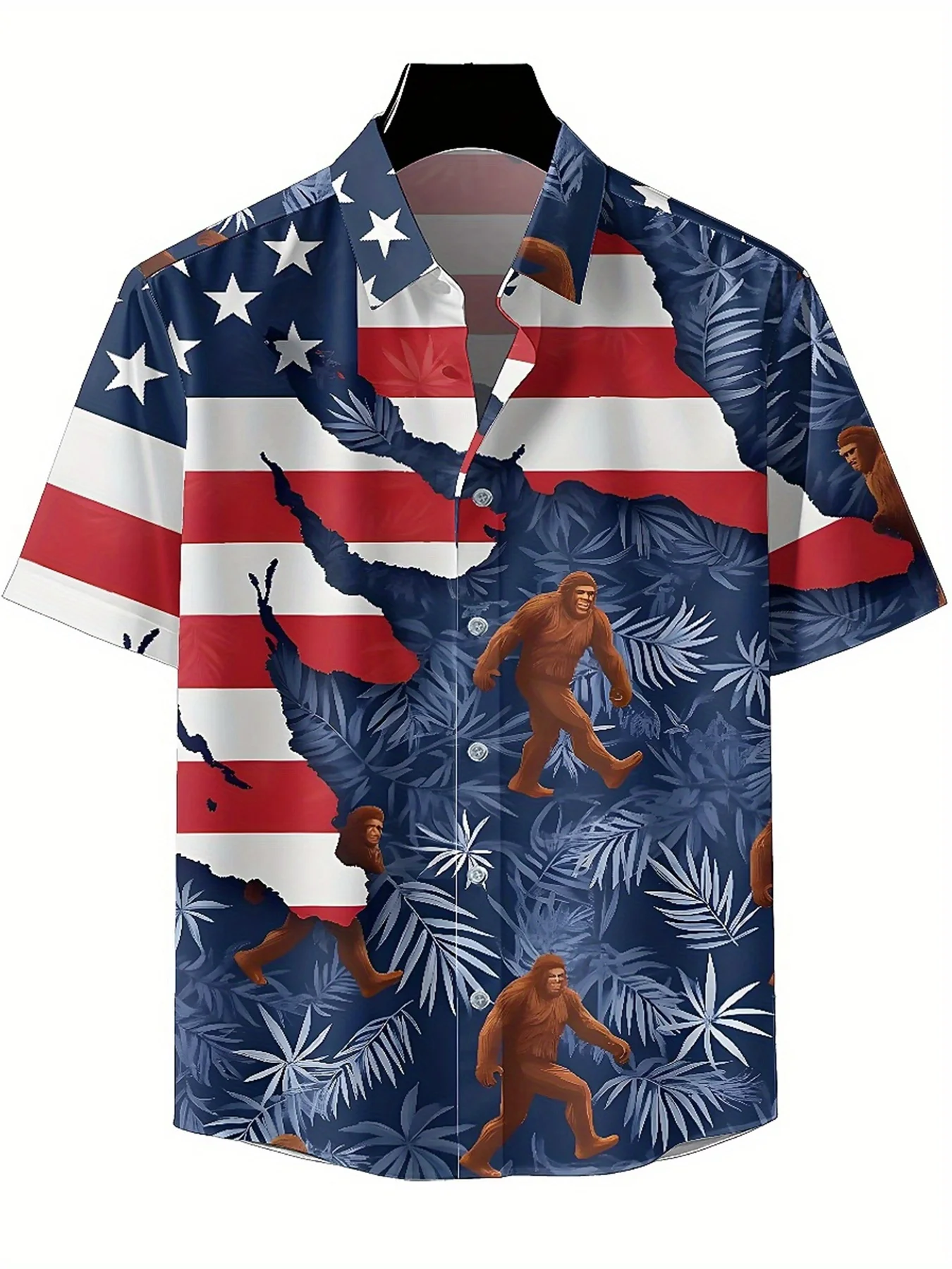 เสื้อฮาวายขนาดบวกของผู้ชาย Sasquatch และลายใบปาล์มสีน้ําตาล, เสื้อเชิ้ตติดกระดุม, เสื้อผ้าลําลองสําหรับทั้งชายและหญิง, เสื้อฤดูร้อน - TopDealBox