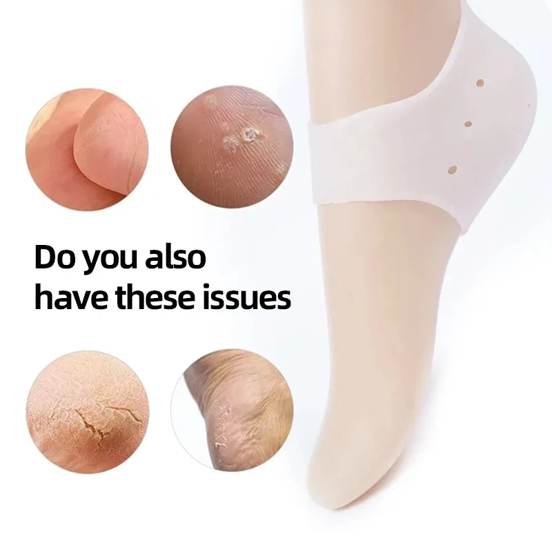 ถุงเท้าดูแลเท้าทำจากซิลิโคน2ชิ้นถุงเท้าบางๆที่มีรูป้องกันครีมบำรุงเท้าแตกที่คลุมส้นเท้าลายลูกไม้ - TopDealBox