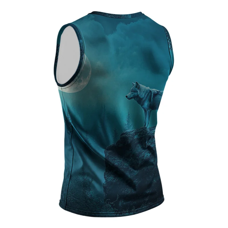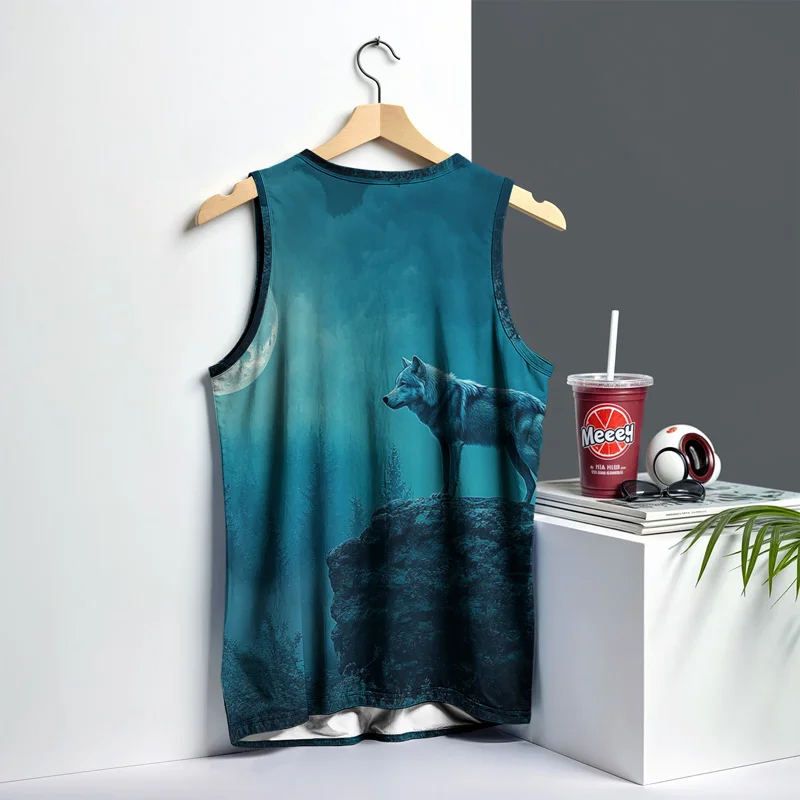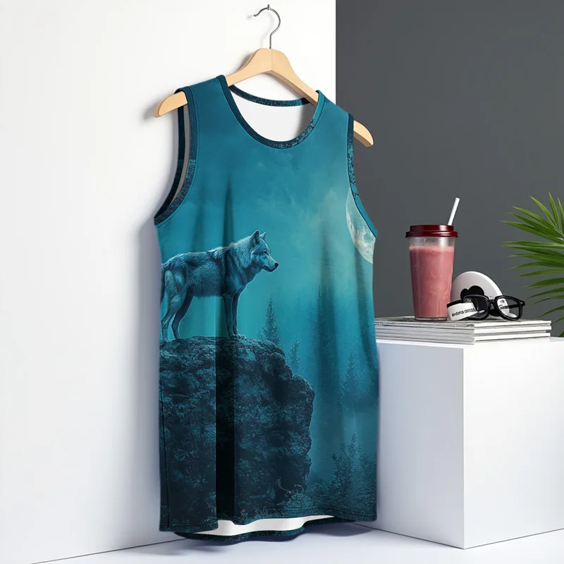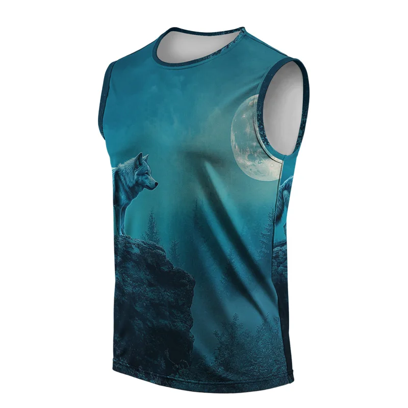 หมาป่าแฟชั่นผู้ชายฤดูร้อนเสื้อกั๊ก Street สไตล์รอบคอพิมพ์สัตว์ T เสื้อกีฬาสําหรับกีฬากลางแจ้งฟิตเนส - TopDealBox