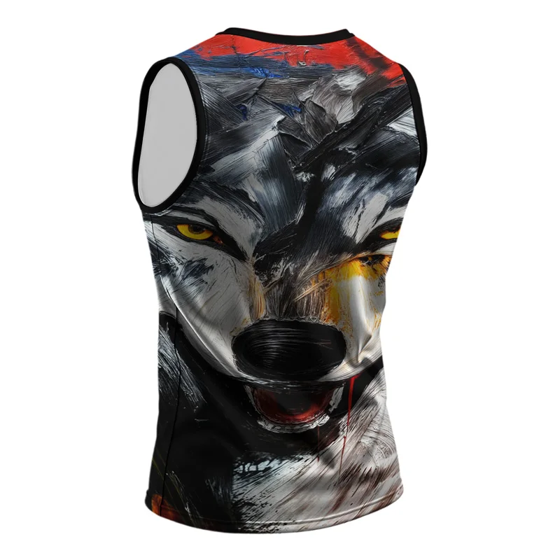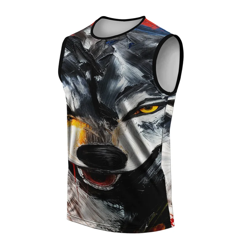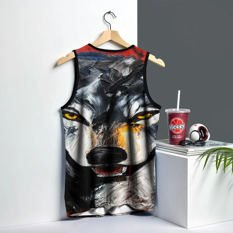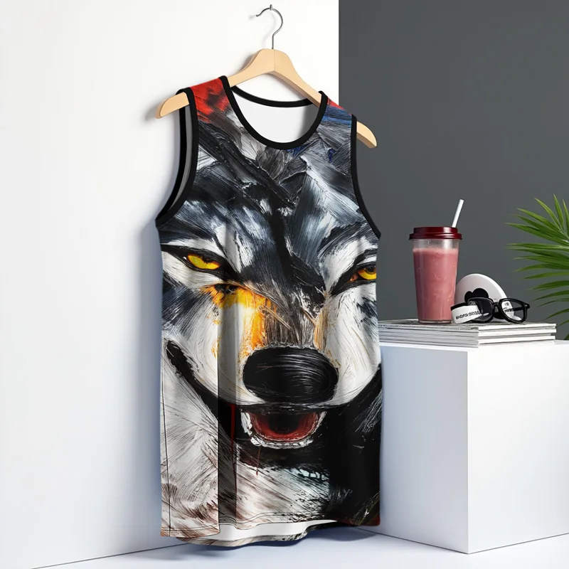 หมาป่าแฟชั่นผู้ชายฤดูร้อนเสื้อกั๊ก Street สไตล์รอบคอพิมพ์สัตว์ออกแบบเสื้อ T กีฬาสําหรับกีฬากลางแจ้ง Fi - TopDealBox