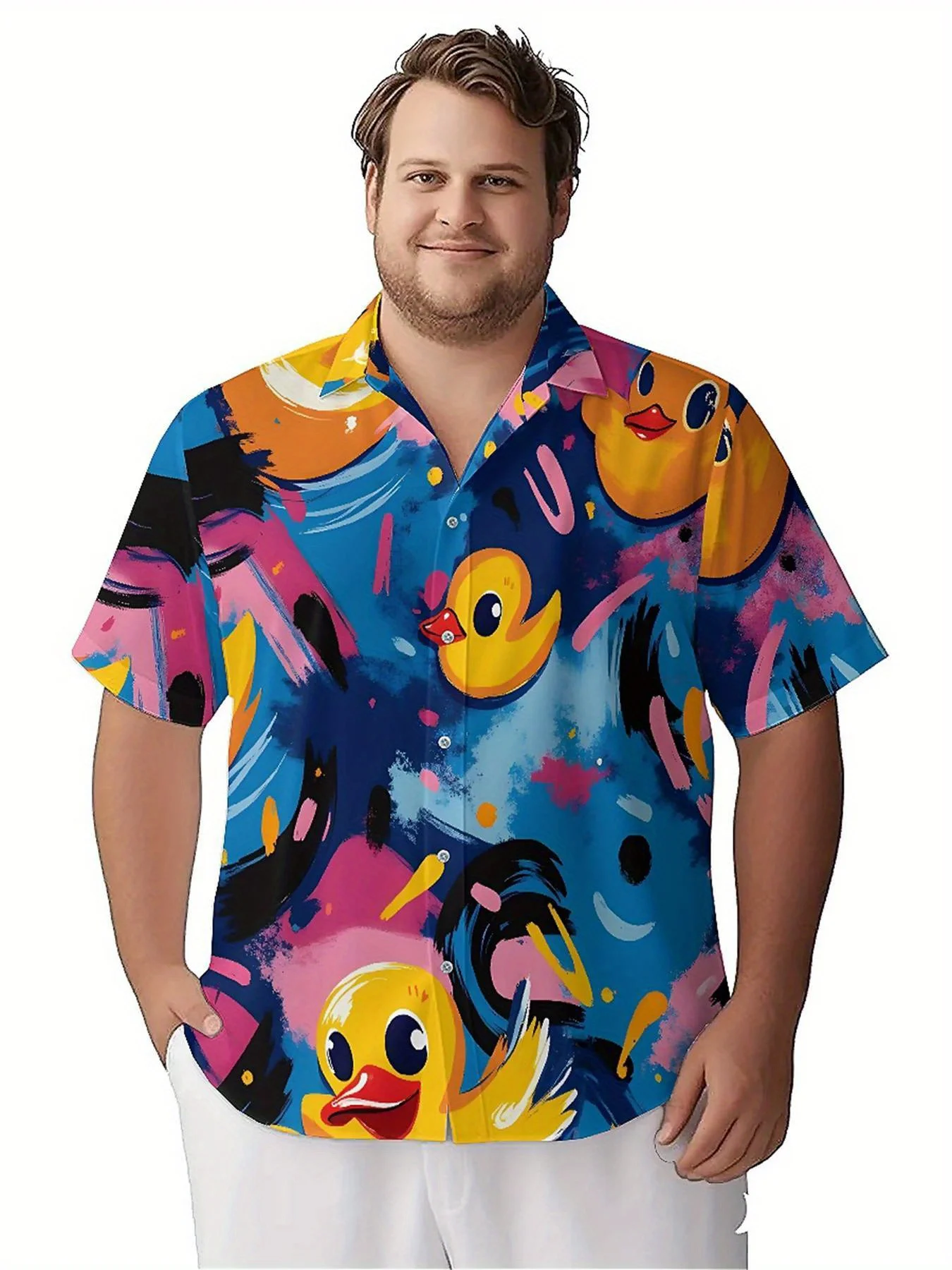 เสื้อฮาวายขนาดบวกของผู้ชายลายเป็ดสีสันสดใสใหม่ในเสื้อแฟชั่นฤดูร้อนฮิปฮอปร็อค streetwear - TopDealBox