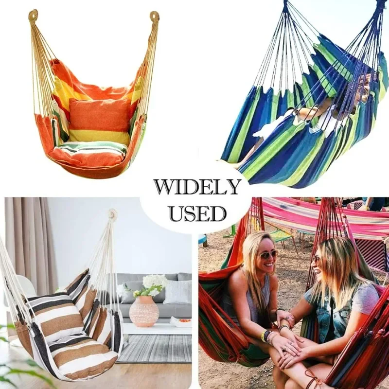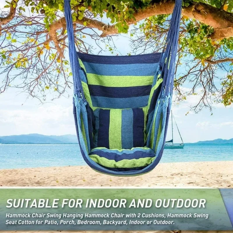 ♡ดูแบบย่อความจุ 200 กก.ลายผ้าใบเปลญวนเก้าอี้หนา Swing ที่นั่งสําหรับ Garden Patio Camping Beach หอพักพักพักผ่อนพร้อมกระเป๋าเก็บ390.42 THBมาแรง★★★★★★5.0