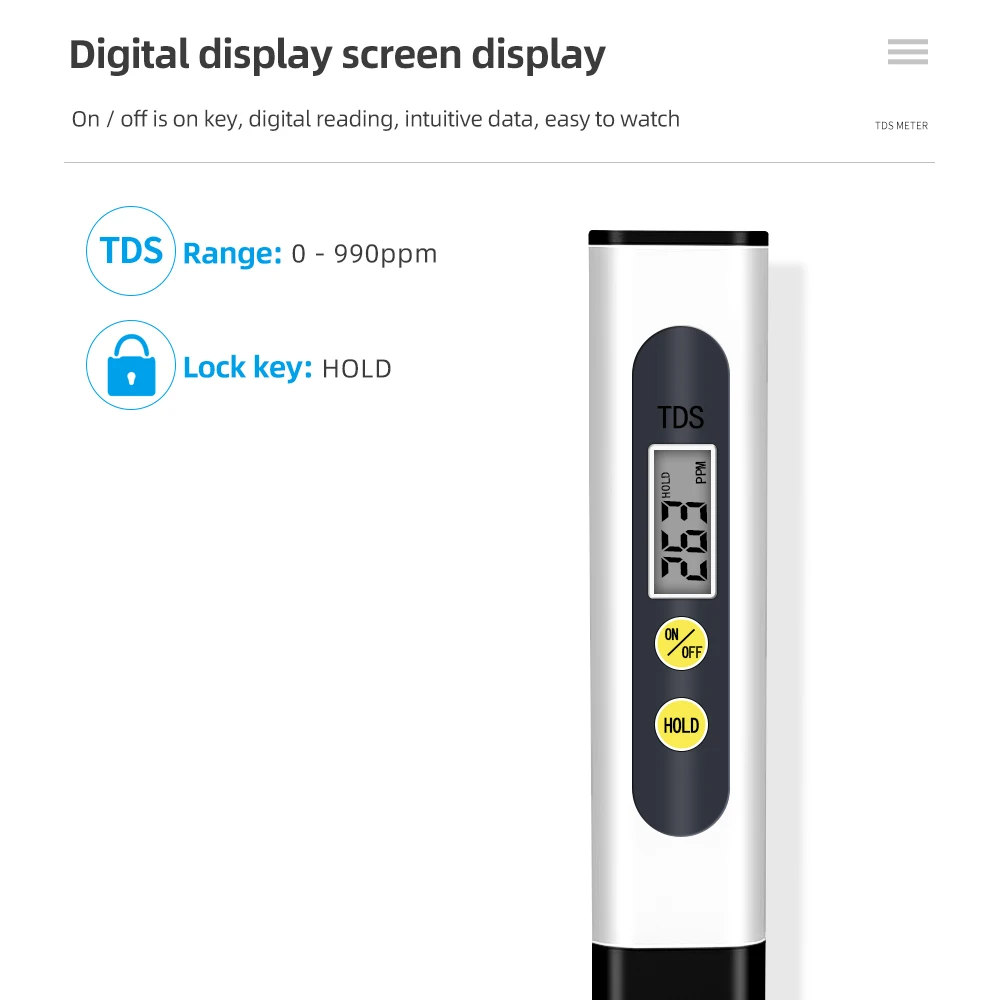 เครื่องวัด TDS แบบพกพาเครื่องทดสอบคุณภาพน้ำดิจิตอล LCD 0-990PPM TDS ปากกาทดสอบเครื่องตรวจจับกรองน้ำสำหรับน้ำดื่มสระว่ายน้ำพิพิธภัณฑ์สัตว์น้ำ