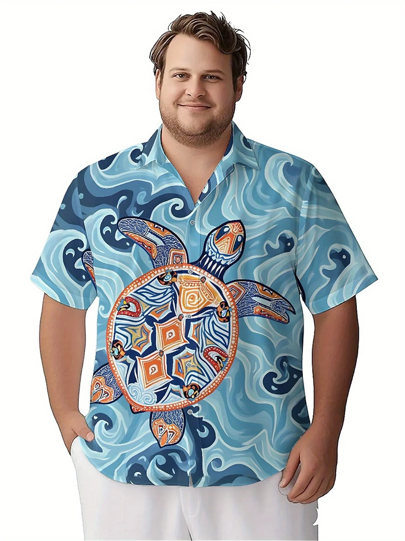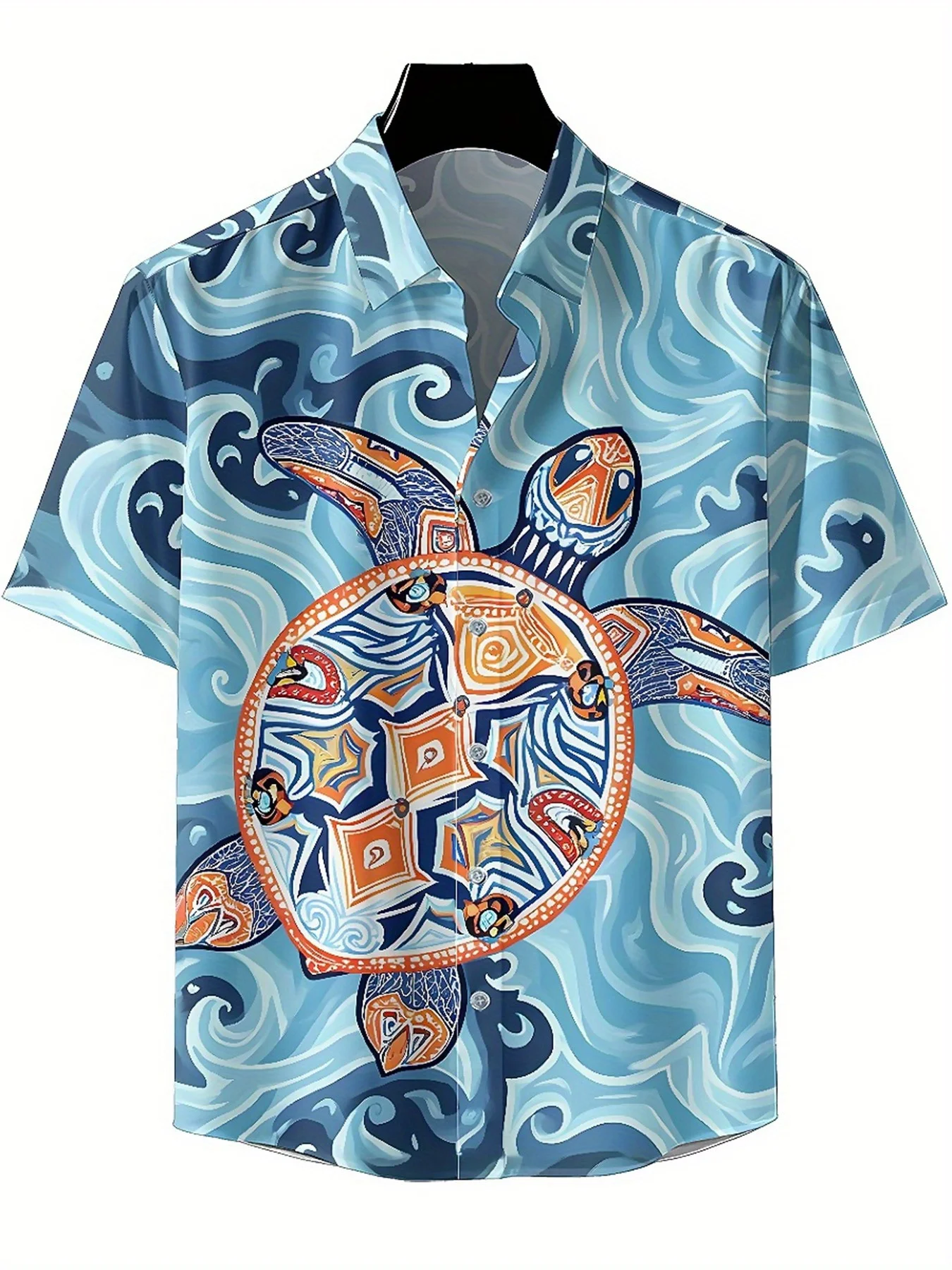 ผู้ชายขนาดบวกเสื้อฮาวายเต่าทะเลลึกรูปแบบเรขาคณิต, U Nisex Aloha เสื้อ,ใหม่ในฤดูร้อนท็อปส์Tee, streetwear - TopDealBox