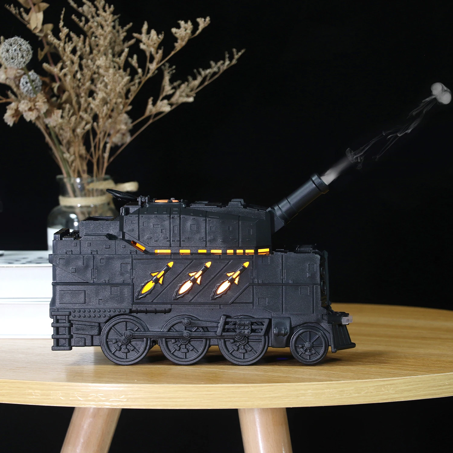 รถไฟแคนนอนอัลตราโซนิกอากาศความชื้นแมงกะพรุนสเปรย์น้ํามันหอมระเหยอโรมากระจายเรือพร้อมไฟสีสันสดใสรีโมทคอนโทรล - TopDealBox