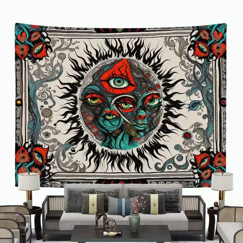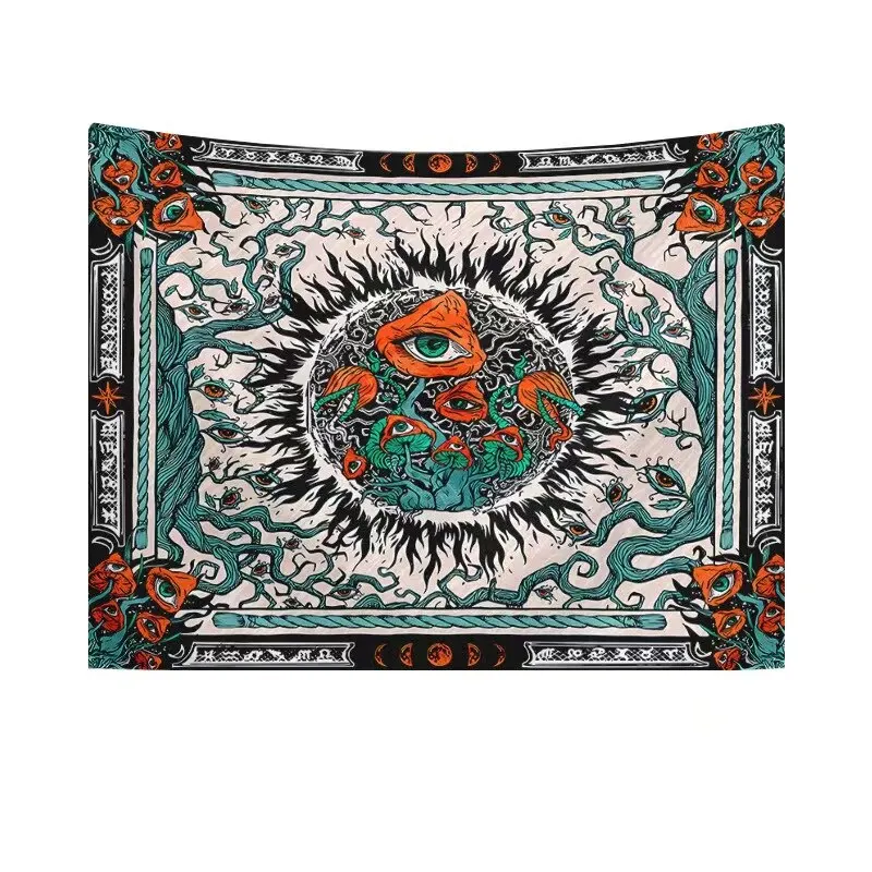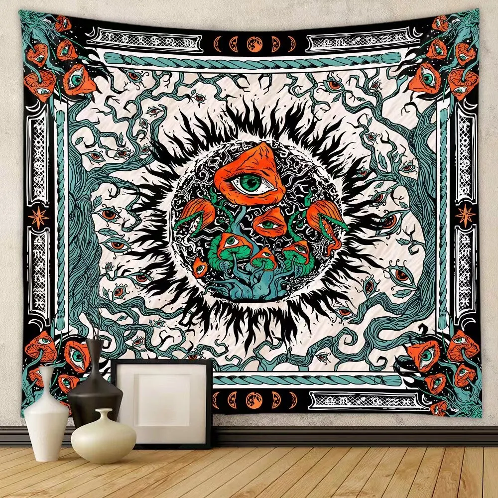 พรมแขวนผนังลายดอกไม้และต้นไม้แมนดาลาแฟนตาซีขนาดใหญ่ประดับด้วยดวงตาที่น่าขนลุกและผ้าพื้นหลังโดนแดดเผา - TopDealBox