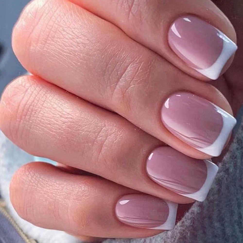 24ชิ้นเล็บสีชมพูสี่เหลี่ยมสั้นเล็บปลอมศิลปะถอดได้เล็บเล็บปลอมแบบเฟรนช์สำหรับคู่รักออกเดทกลางแจ้ง potluck ปาร์ตี้ - TopDealBox