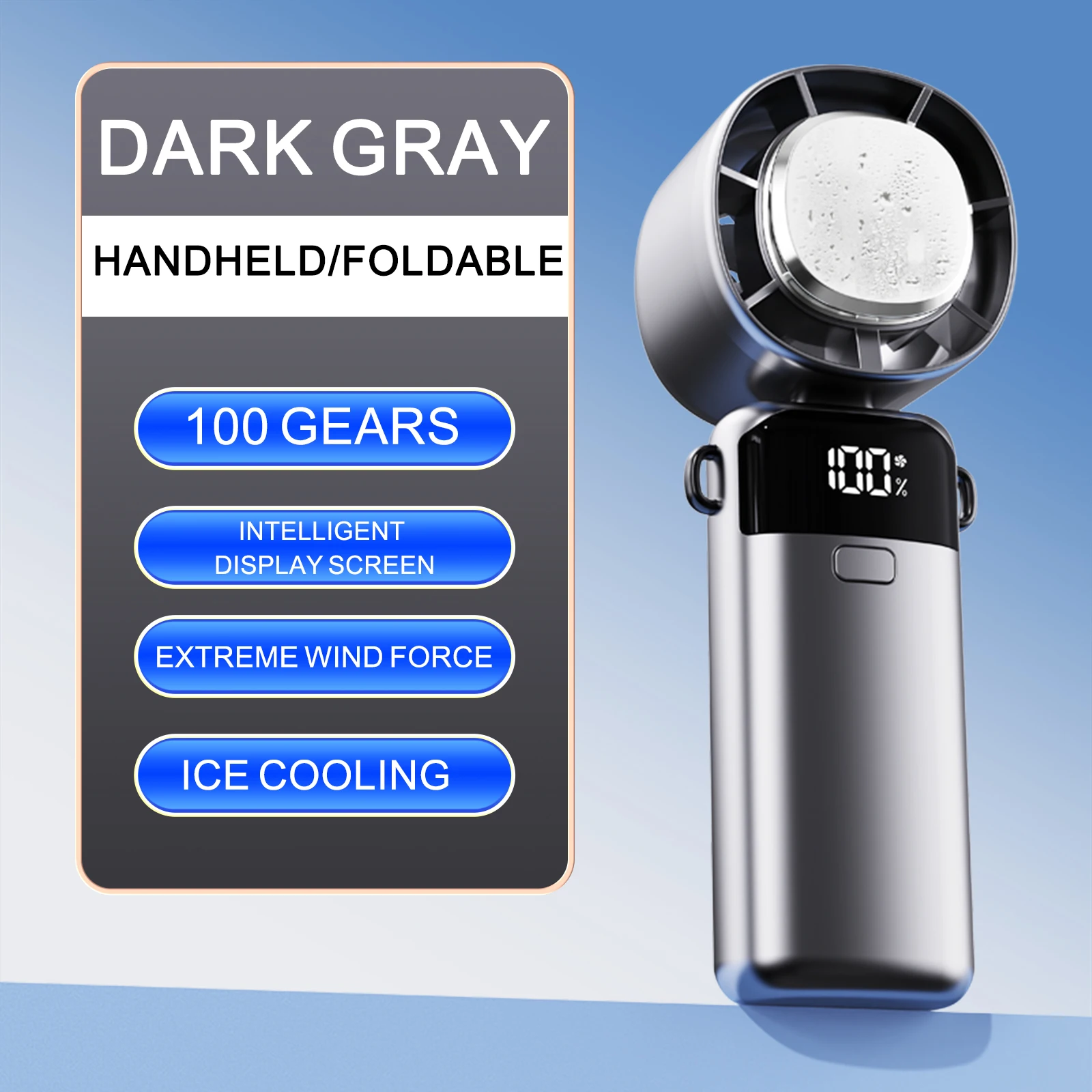 พัดลมมือถือแบบพกพา ใช้พลังงานจาก USB พร้อมหน้าจอแสดงผลดิจิตอล พัดลมพับได้ ระบบทำความเย็น ความเร็วสูง แรงลมทรงพลัง ขนาดเล็ก - TopDealBox