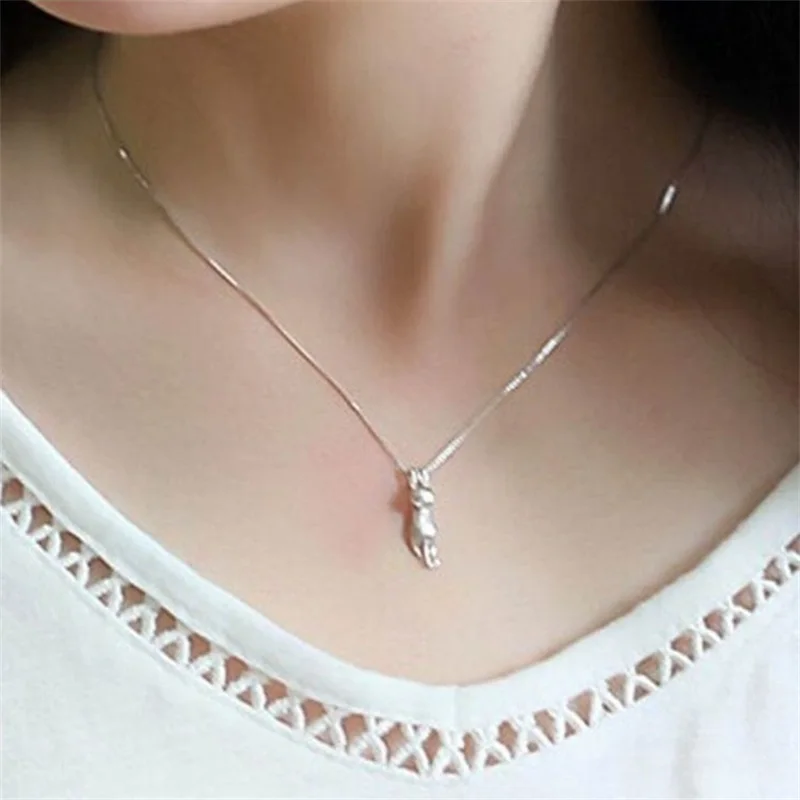 Ventfille 925จี้เงินแท้จี้แมวและสร้อยคอรูปสัตว์แฟชั่นของผู้หญิงคิตตี้ของขวัญเฉพาะบุคคลขายส่ง - TopDealBox