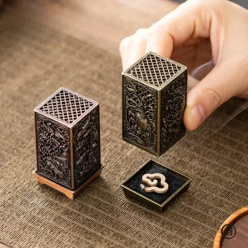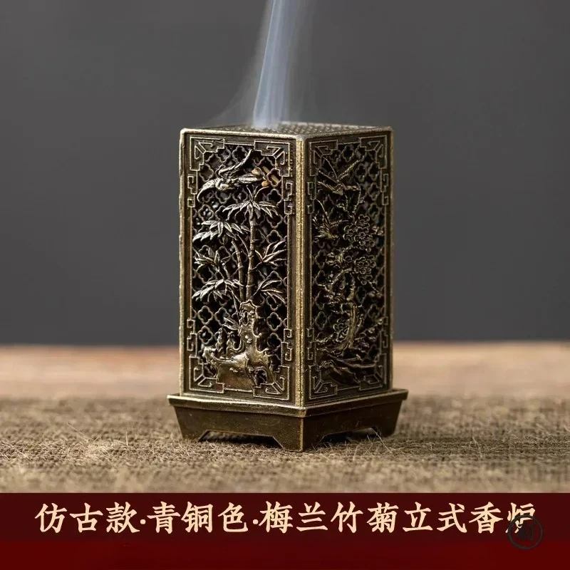 เตาเผากำยานทรงสี่เหลี่ยมแนวตั้งขนาดเล็ก ทำจากโลหะผสม ใช้สำหรับจุดกำยานในบ้าน ตกแต่งบ้าน กลิ่นหอมแบบจีน รูปทรงดอกพลัม - TopDealBox