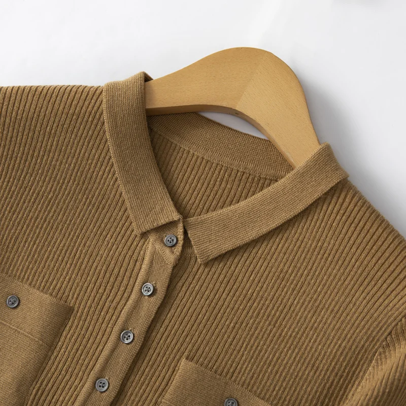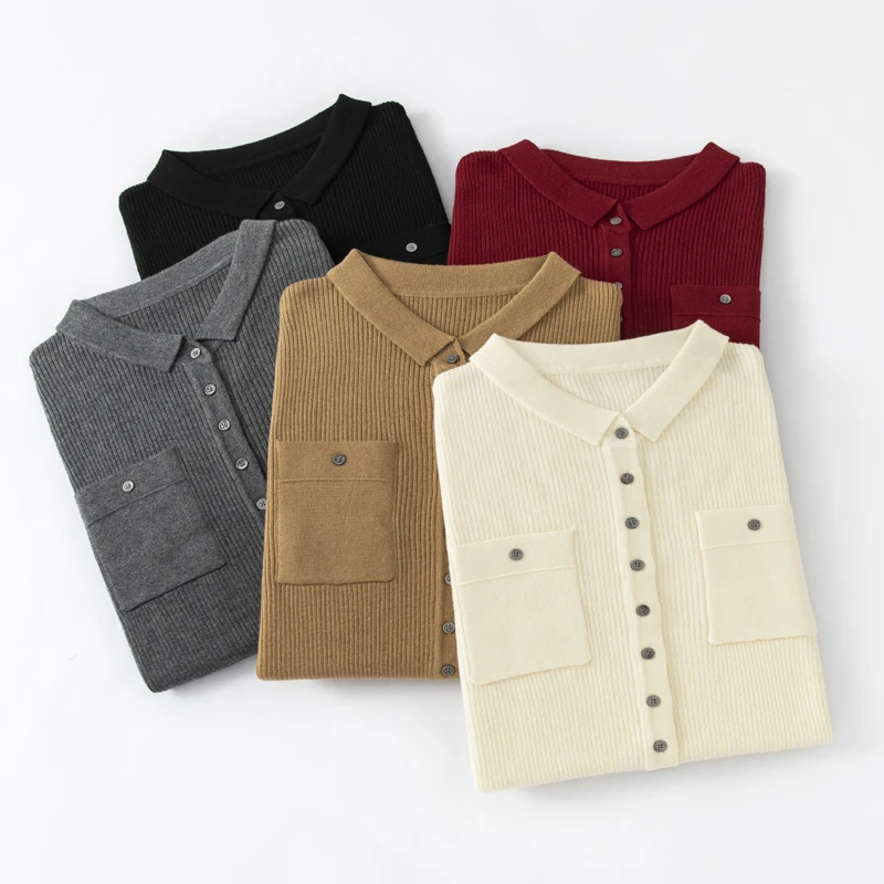 Worsted Fineขนสัตว์บางเสื้อโปโลถักBottomingเสื้อผู้หญิงSlimmingดูเสื้อยืดแขนยาวเรียบง่ายเสื้อผ้าทํางาน - TopDealBox