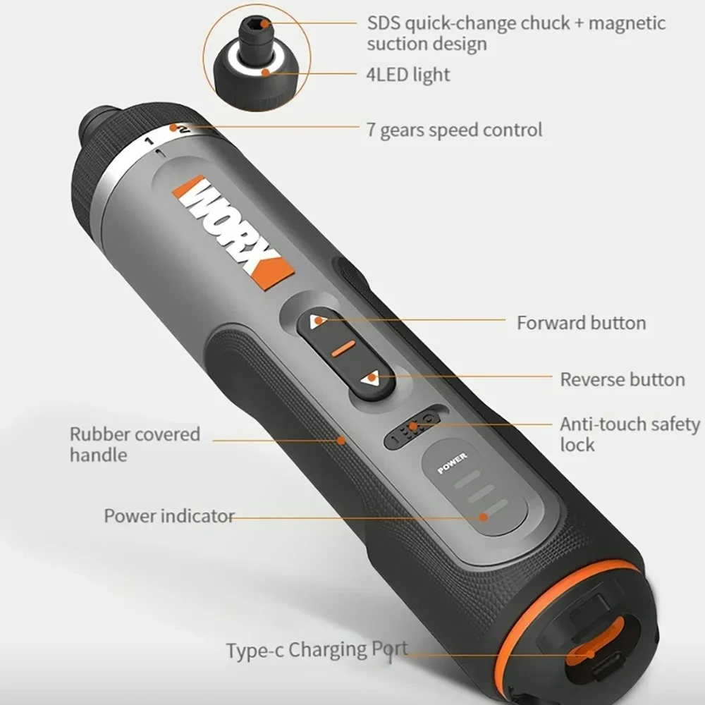 Worx 4V ชุดไขควงไฟฟ้าขนาดเล็ก WX242 WX240 WX241ไขควงไฟฟ้าไร้สายอัจฉริยะเครื่องมือชาร์จไฟ USB - TopDealBox