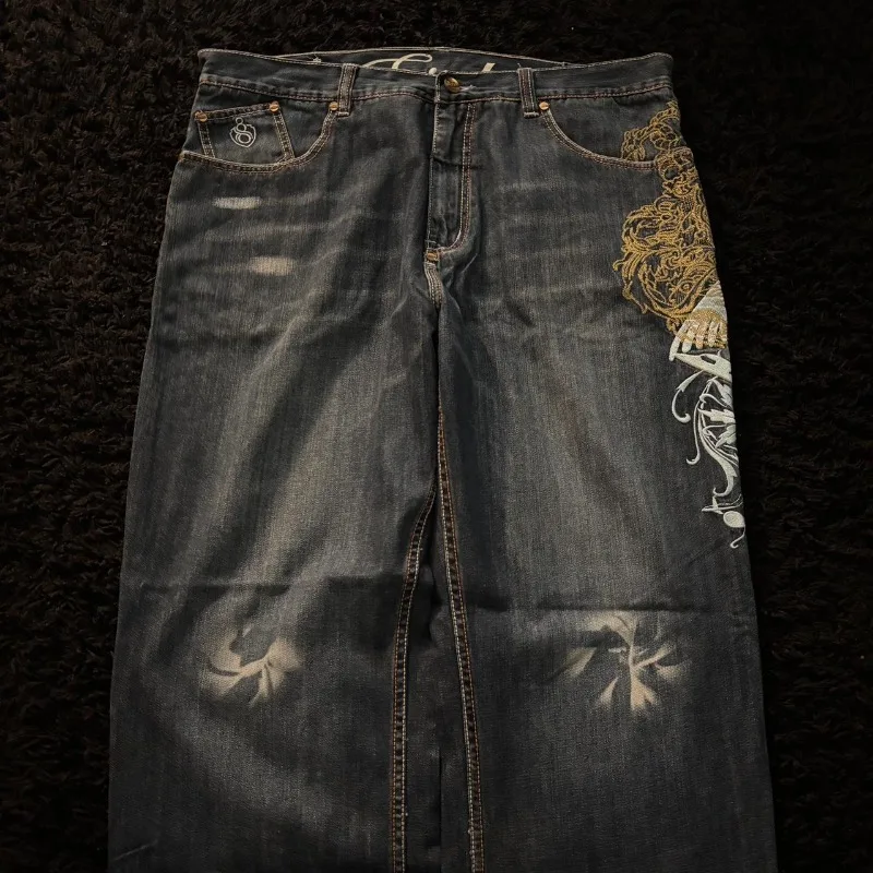 ♡ดูแบบย่อY2K อเมริกันใหม่รูปแบบเย็บปักถักร้อยกางเกงยีนส์ผู้ชาย High Street Vintage Hip Hop แฟชั่น Casual Joker คู่กางเกงขากว้าง604.98 THBมาแรง★★★★★★4.5