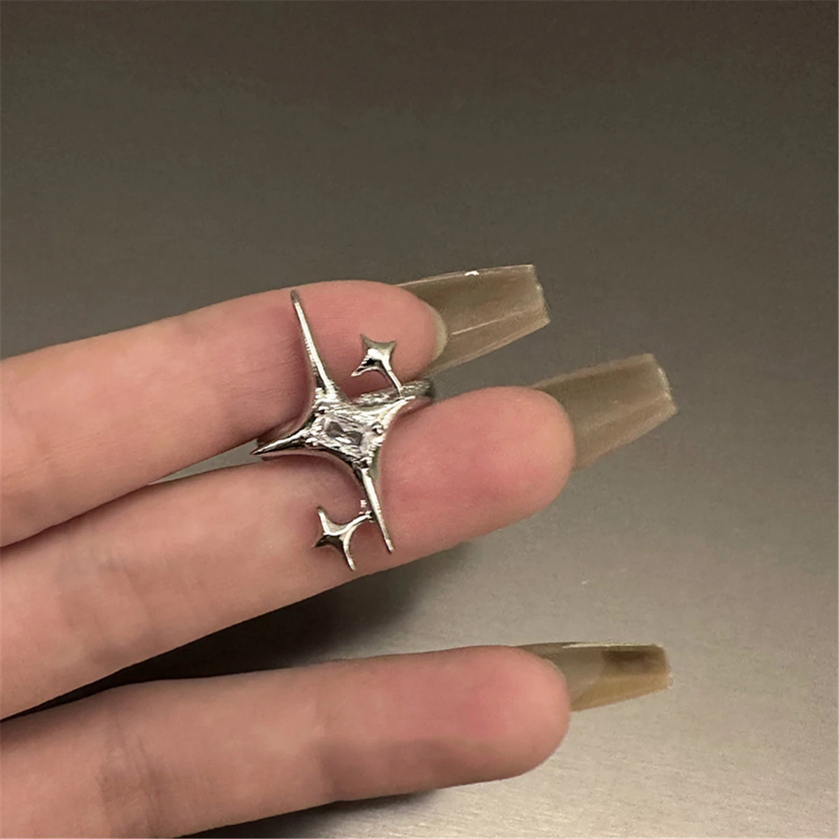 น่ารัก Y2k Star เปิดแหวนผู้หญิง Vintage Silver สีแหวนคู่เครื่องประดับของขวัญ - TopDealBox