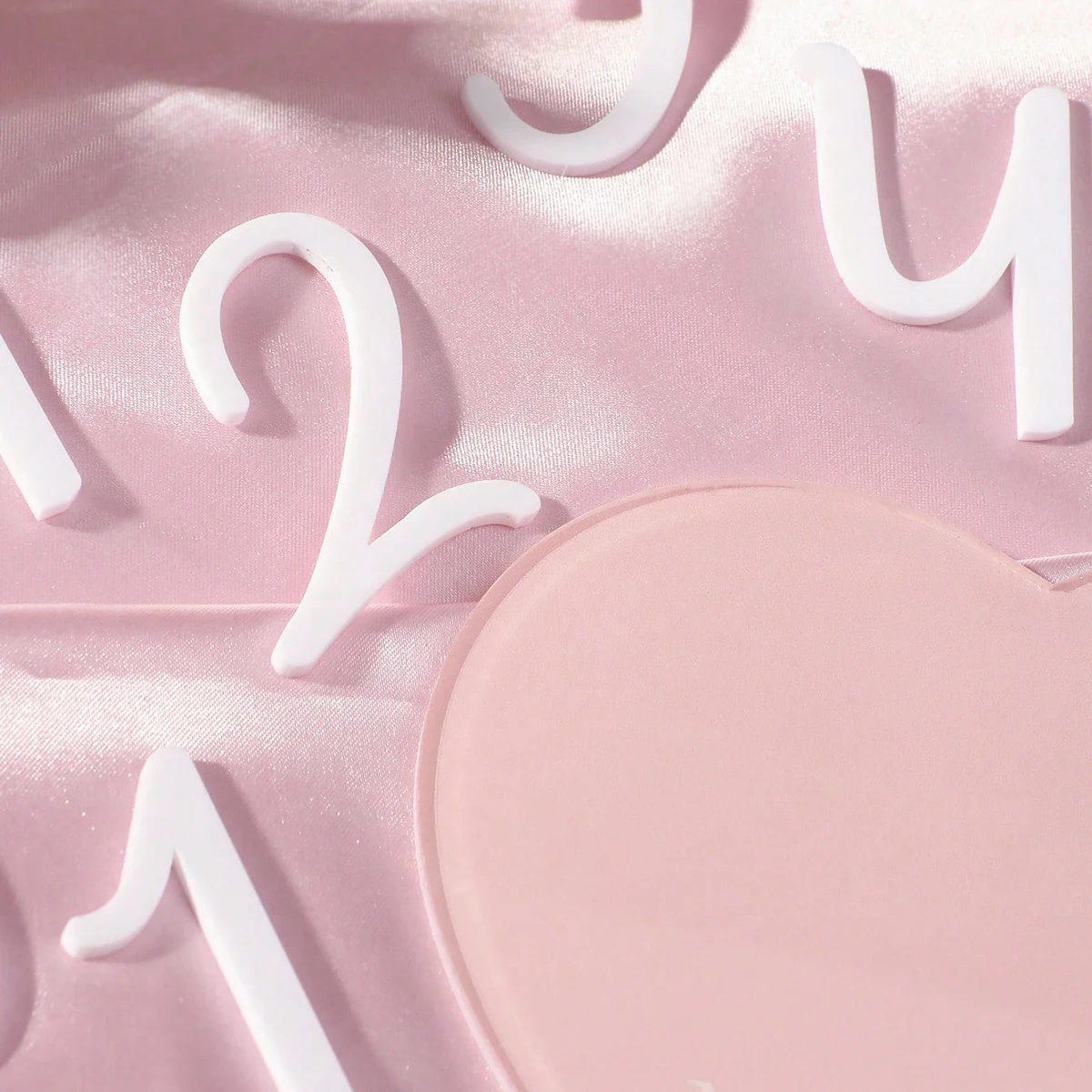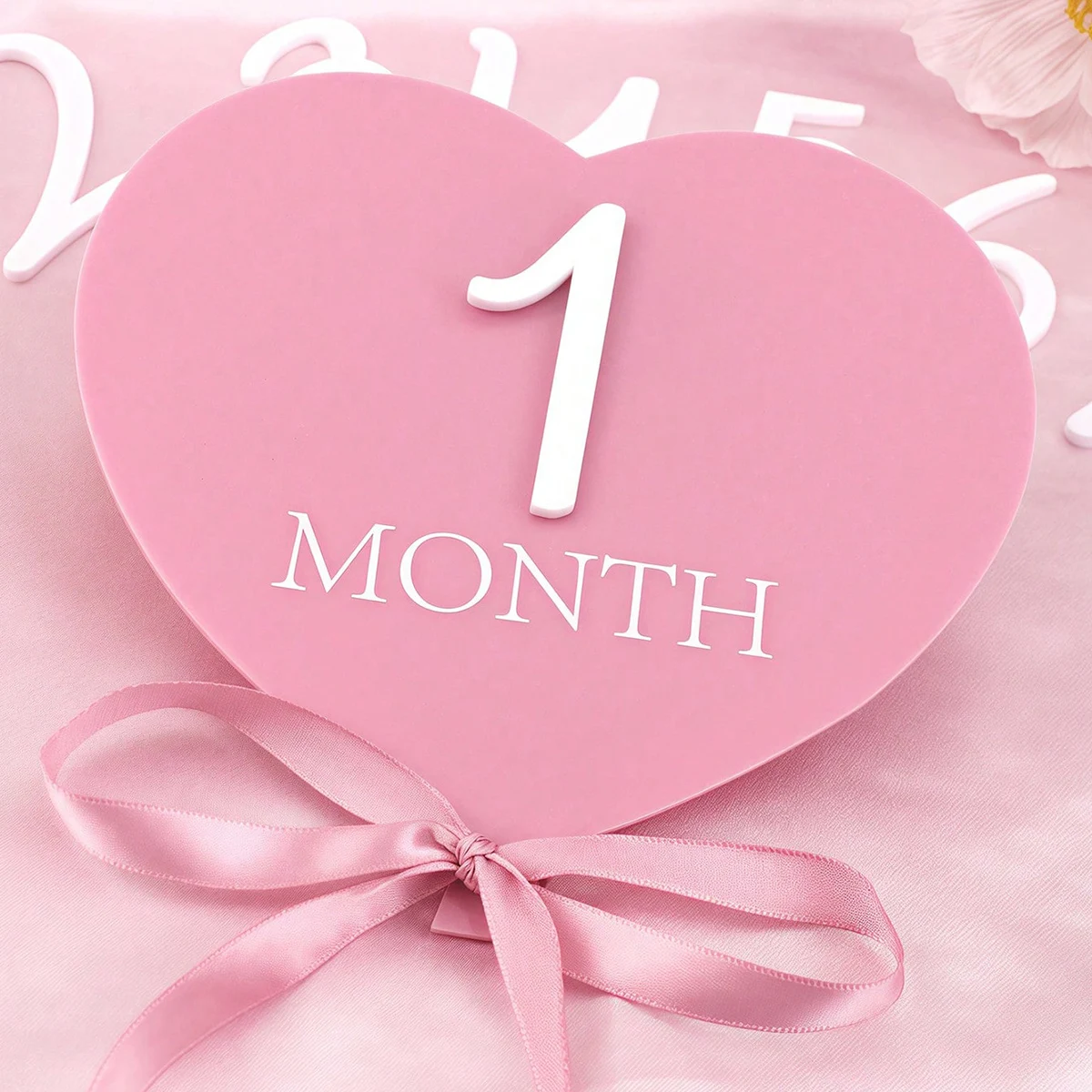 Ylsteed รูปหัวใจสีชมพูเด็กรายเดือน Milestone Sign ริบบิ้นสีชมพูทารกแรกเกิดรายเดือน Photo Props จับคู่กับหมายเลข 0-12 - TopDealBox