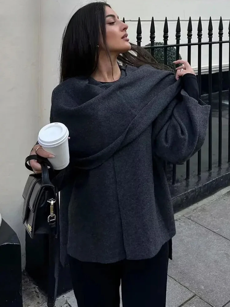 ZBZAผู้หญิงไม่สมมาตรผ้าพันคอถักเสื้อO-คอปุ่มด้านข้างหลวมเสื้อฤดูหนาวใหม่หญิงเก๋Outerwear