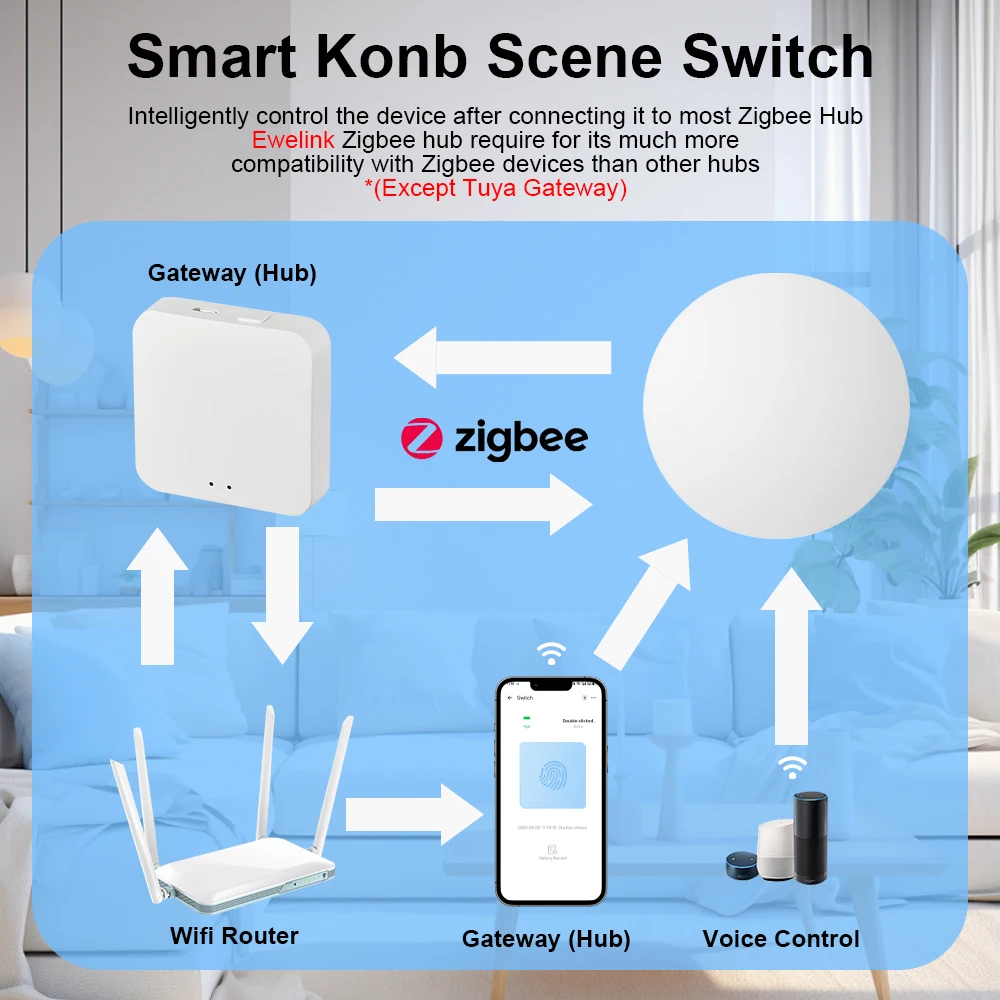 สวิตช์ไร้สายแบบกดปุ่มอัจฉริยะ Zigbee พร้อมแบตเตอรี่ รีโมทคอนโทรล สวิตช์อัตโนมัติ ทำงานร่วมกับแอป eWelink - TopDealBox